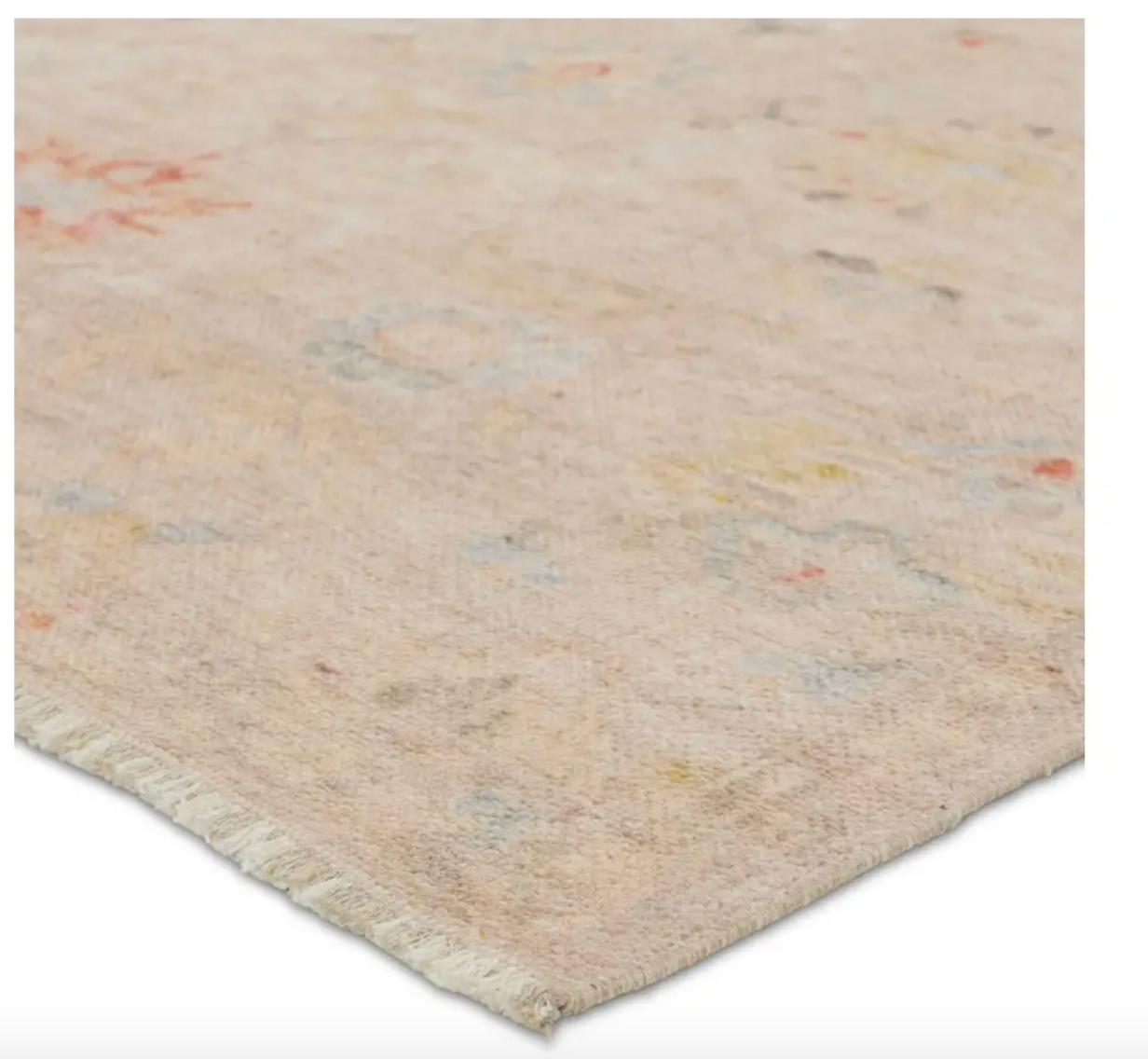 The Boheme collection brings vintage inspiration to life with ornate, worldly designs and a timeless distress effect. The Pia area rug boasts a Persian-inspired center medallion, short fringe and detail-rich border in a navy, cream, gray, and pastel green colorway. This zero-pile rug is printed on cotton, polyester, and soft chenille for a flat, durable finish. Perfect for high and low trafficked areas of the home, this rug delights in bedrooms, halls, living areas, dining rooms, and entryways. Catalog Code: BOH24, Design: Pia, Construction: Power Loomed, Content: 78% Cotton 22% Polyester