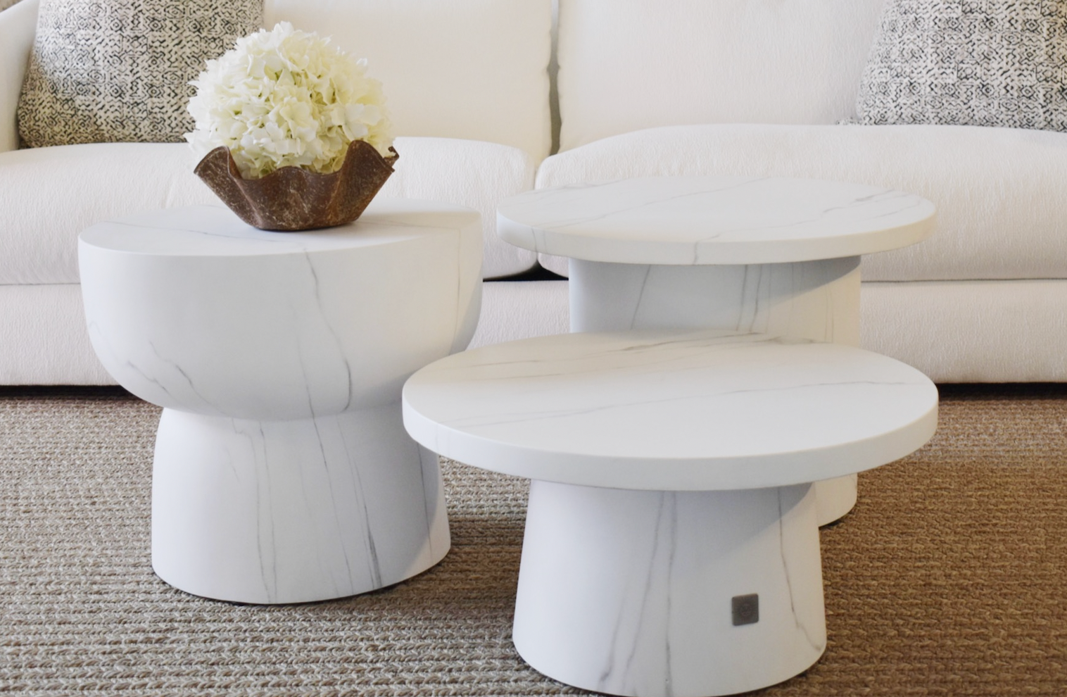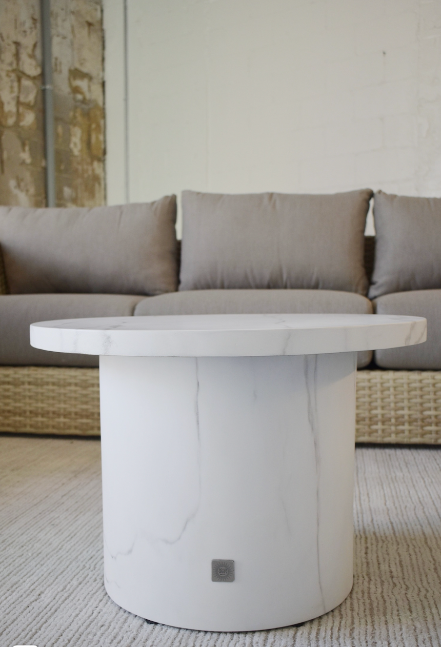 Introducing the Lauren Large side table, crafted from luxurious polystone with the exquisite look of marble. Elevate your living space indoor or outdoor with this elegant piece, perfect for resting your favorite books or displaying a statement decor item. Add a touch of sophistication to your home today.