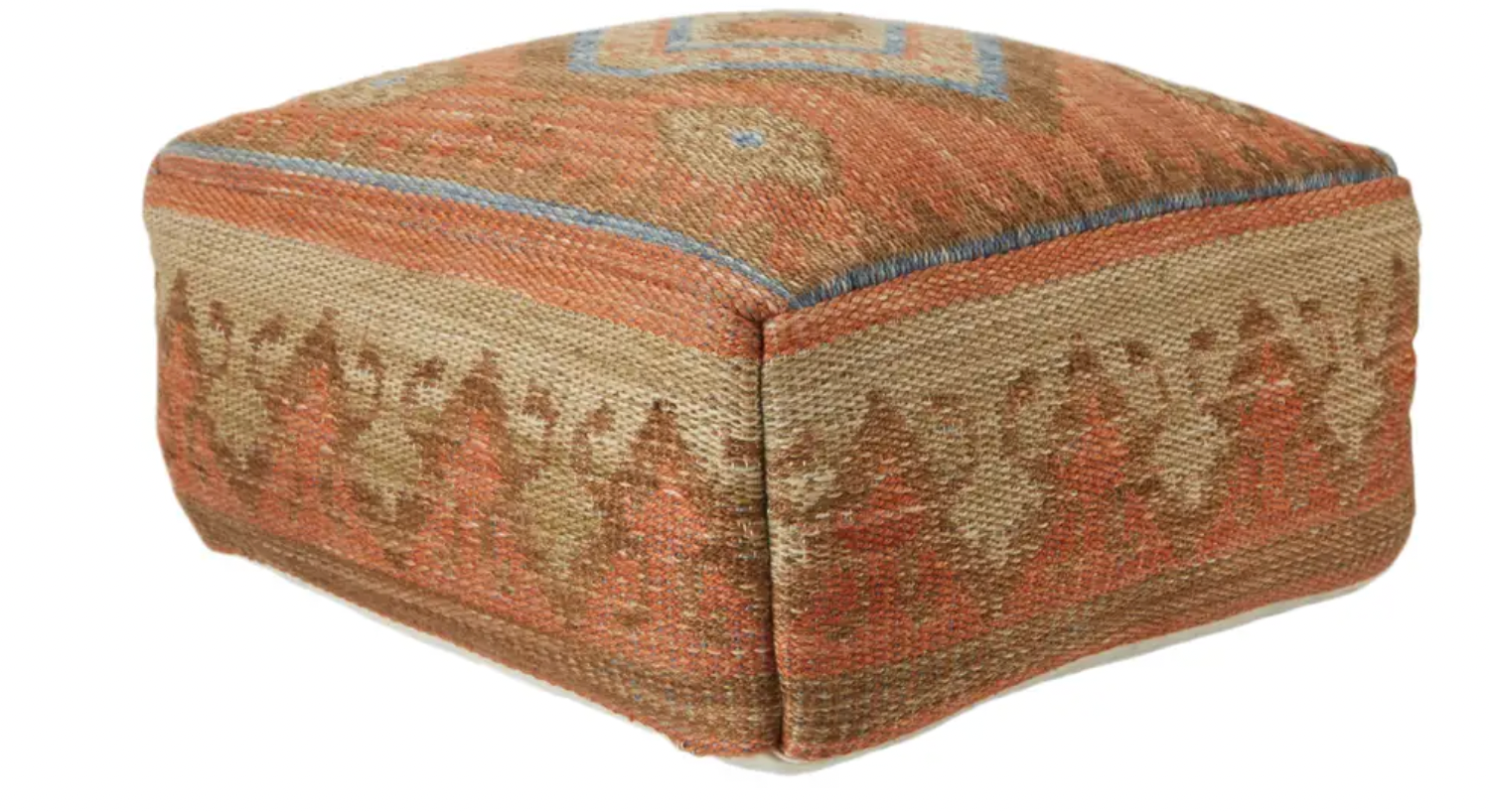 The Sundial pouf collection brings bohemian charm to contemporary homes. The oversized Ember pouf draws texture inspiration from traditional kilim rugs, adding a performance-driven twist with the durable choice of fibers. Crafted of polyester, this vintage-inspired ottoman offers a whimsical and worldly look to any indoor or outdoor space.