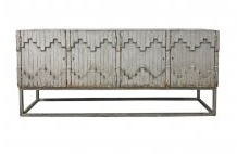 Our weather-worn Gustav Buffet brings rustic farmhouse charm to any kitchen. Store dishes, serving ware or silver in style. The Buffet has ample storage behind four cabinet doors. Light sanding reveals a vintage patina of colorful layers beneath a gray finish. Both pieces come with skeleton keys for security.