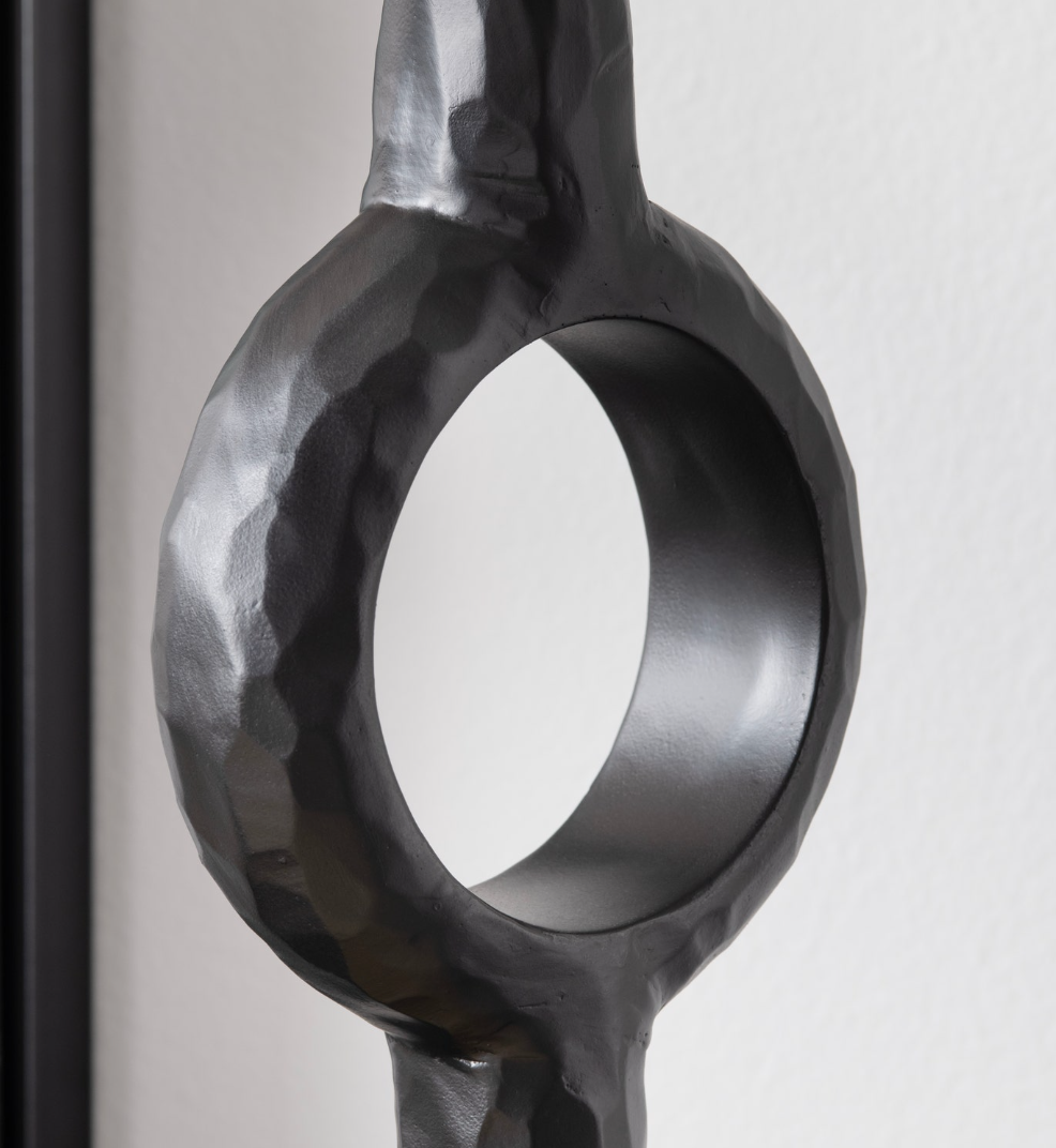 An abstract modern base brings a sculptural element to your space with the Crestview Collection Creed Table Lamp. Crafted from resin that has the look of forged iron. It is finished in a rich matte black and accented with gold caps and base. The white linen shade complements the intricate structure of the lamp and provides a functional focal piece for a console or side table.