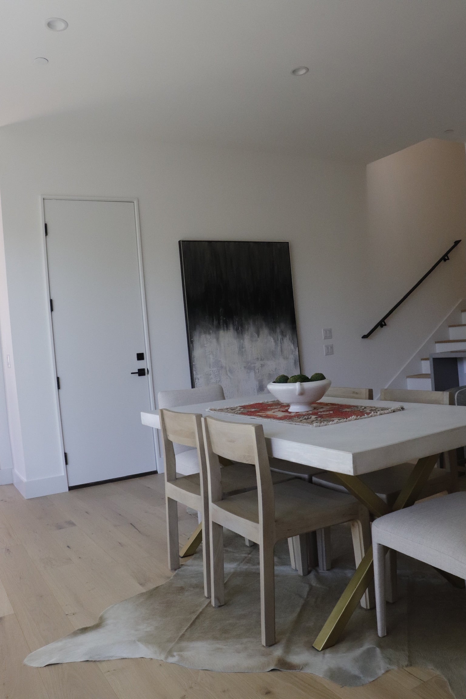 Just like the name suggests, our Flourish collections adds a touch of flair to any décor. Our dining table is constructed of assembled wood in a light chevron pattern on an antique brass-plated frame.