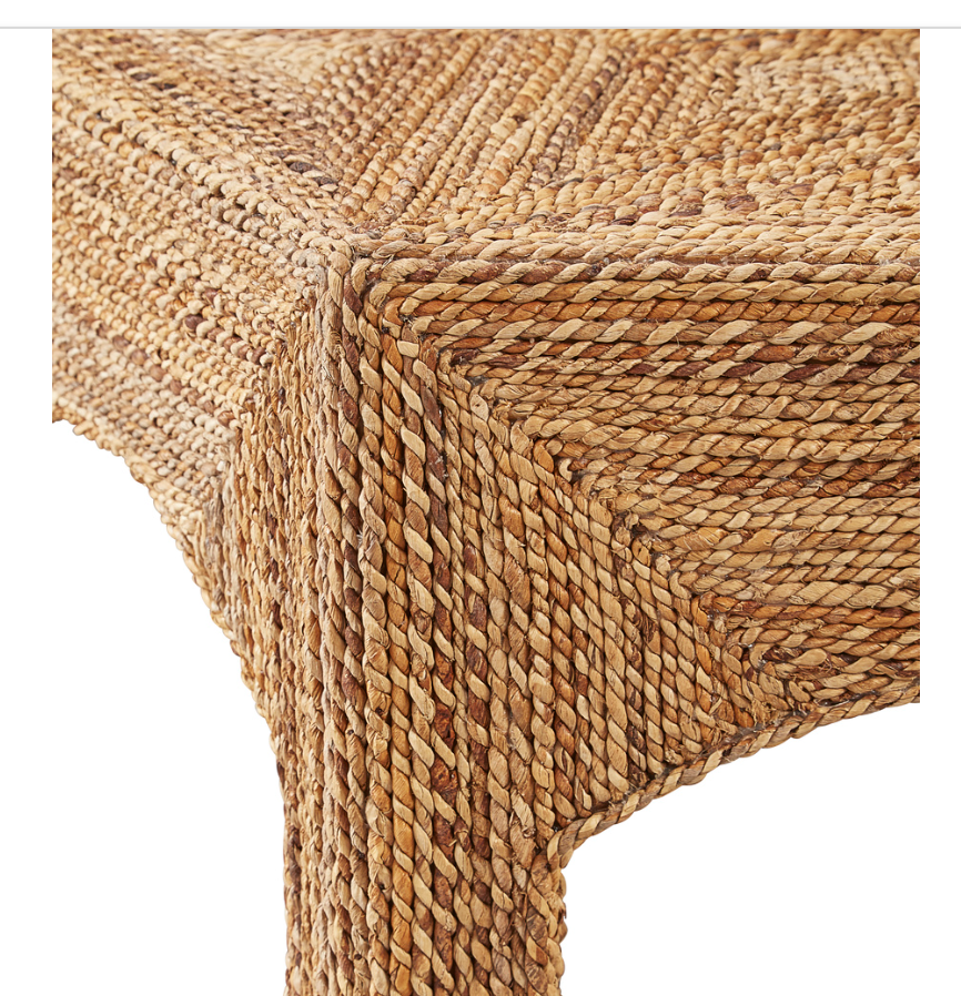 Boho chic and slightly Moroccan in feeling, this unique table is crafted from tightly woven and coiled dried natural banana fronds which is very sturdy. The hexagon design provides inspiration for the graphically arresting star design on the table top. What a unique way to bring texture into your design!