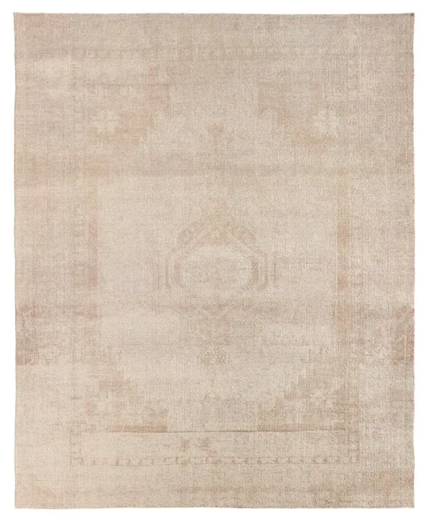 Introducing Tesorino, a collaboration between House Sprucing and Jaipur Living. Inspired by the sun-faded allure of vintage treasures, this handcrafted rug blends the coveted antique aesthetic with modern ease of maintenance. Rooted in centuries-old Turkish rug-weaving traditions, artisans printed the tan medallion design over a blank handwoven base, emulating the look and feel of an actual vintage rug.